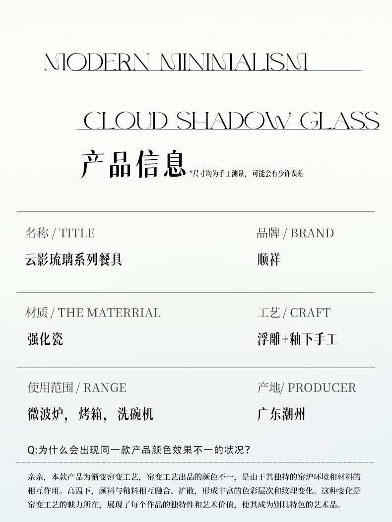 名称:云影琉璃系列餐具