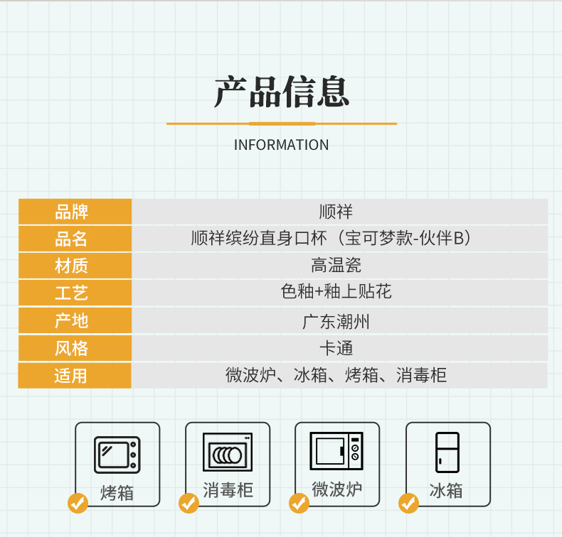 名称:顺祥宝可梦款伙伴直身杯